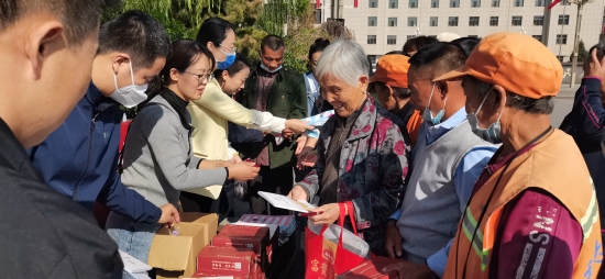 观展结束后,榆林市长城保护中心的工作人员为观展的群众发放了水杯、围裙、《长城保护条例》《榆林市人民政府关于进一步加强全市长城保护工作的实施意见》《中华人民共和国文物保护法》等。市公共文化活动中心的工作人员为大家发放了毛巾、抽纸、笔和《长城宣传册》等文物保护宣传品。