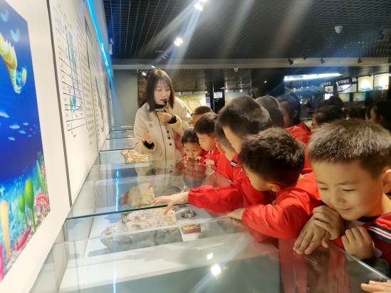 活动中,孩子们怀着好奇与兴奋,有序走进恐龙展厅与先秦展厅。从亿万年前神秘的恐龙化石,到古朴厚重的先秦文物,一件件珍贵展品吸引着孩子们驻足观看、认真探寻。讲解员老师用生动童趣、通俗易懂的语言,为孩子们讲述远古故事与历史文化,带领大家近距离感受神木的岁月变迁与文明脉络。孩子们认真聆听、仔细观察,在看一看、听一听、说一说的过程中,沉浸式感受历史魅力,收获满满。